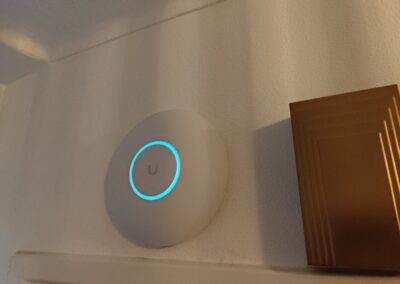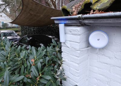 Achter in de tuin en bij de carport is een extra access point geplaatst, waardoor daar nu een volledig 1 Gbit wifi-signaal beschikbaar is. De Tesla ontvangt weer probleemloos updates, thuiswerken verloopt stabiel en meetings vinden plaats zonder onderbrekingen. In het hele huis én de tuin is nu betrouwbaar en snel wifi beschikbaar.