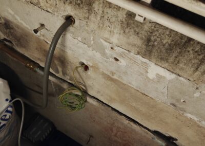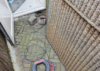 Bij deze klant in Katwijk was tijdens de bouw van de schuur een loze leiding aangelegd. Door verzakking en een extra betonnen vloerlaag was deze leiding later niet meer rechtstreeks bereikbaar. De vraag was om alsnog een internetkabel naar de schuur te trekken.