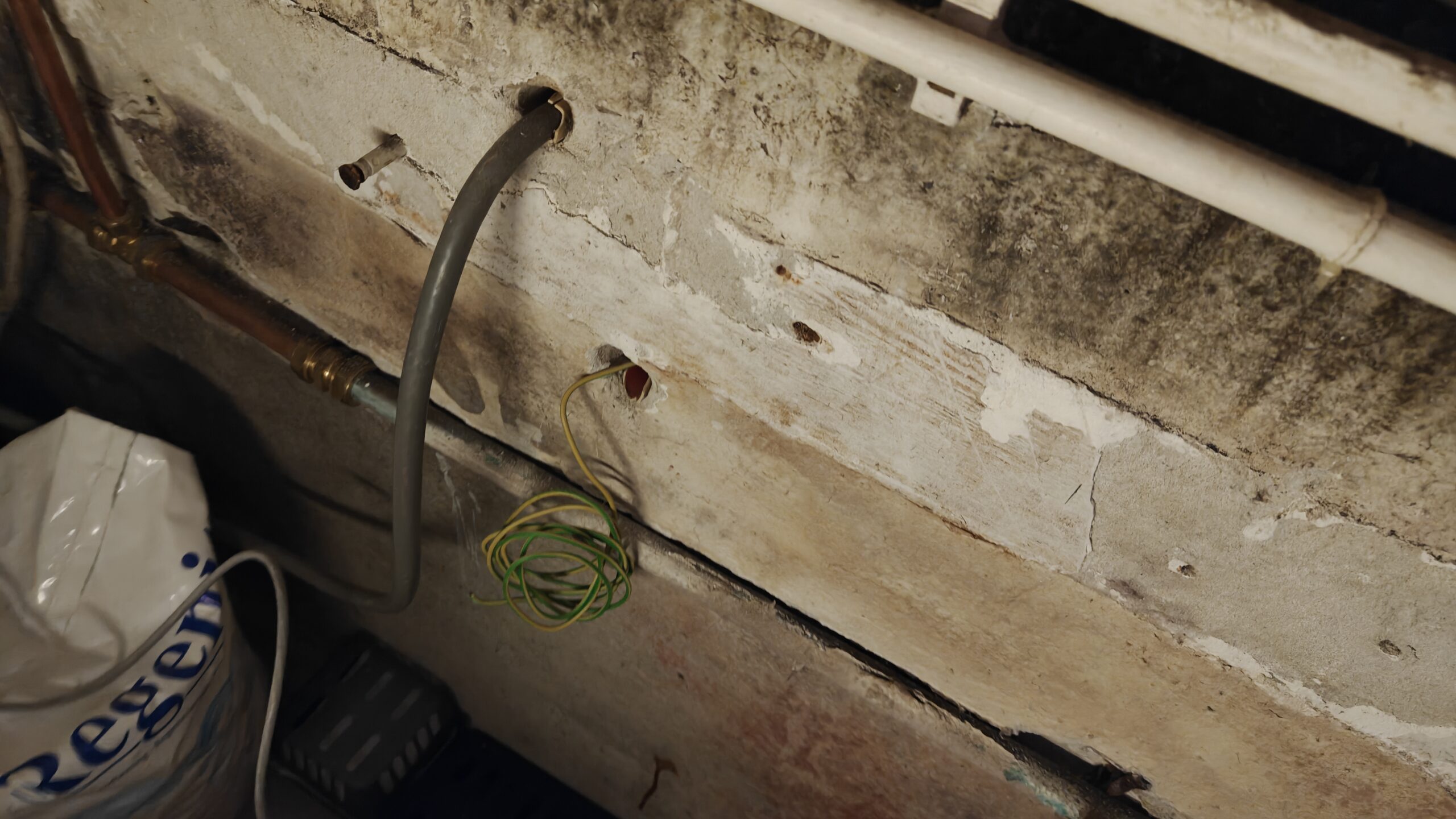 Wij hebben de loze leiding opgezocht tot het punt waar deze nog intact was. De buis is daar opengezaagd, waarna we via de meterkast en een waterput in de kelder de kabel richting de schuur konden trekken. Voor de schuur hebben we de kabel via de muur naar binnen gebracht. De klant verzorgde zelf de afwerking om kosten te besparen.